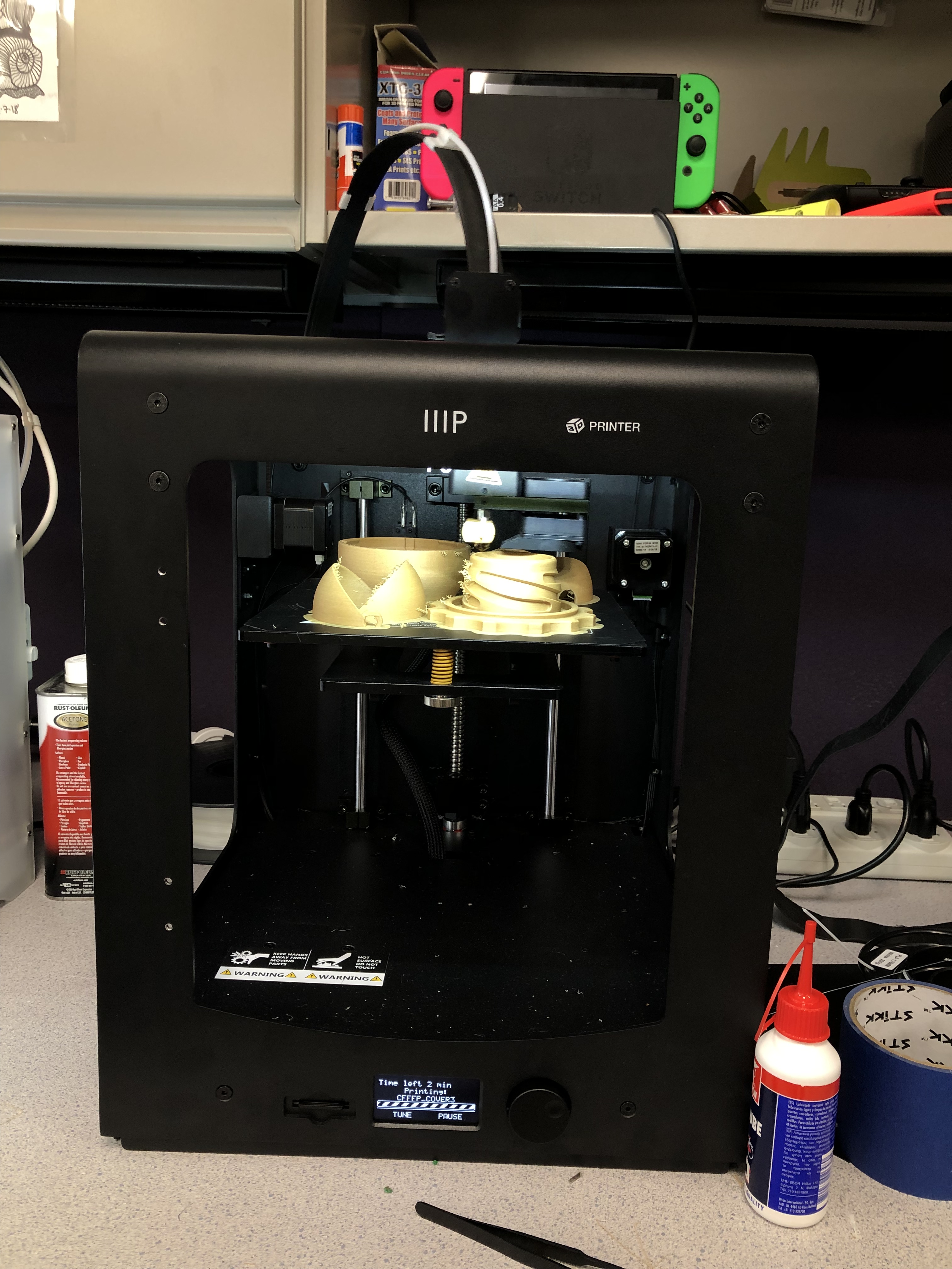 The 3D printer experience is one of a kind. It was fascinating to see how the printer works and how one can print something out of pure imagination and make it into a 3D figure. The length of time to print a design depends on the complexity of the design as well as its details and size. It can take two hours or even up to 24 hours to print a design. You can change its dimensions and design through a program on the computer that connects to the 3D printer. My group chose to print a 3D roller coaster for our future math class. For an educator, the 3D printer can be useful in the classroom as it can provide a visual and tactile representation of a concept or idea for students to feel and see.